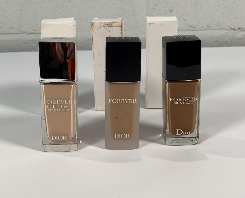 Three as new DIOR Forever Skin Glow Foundation testers 1 x 1, 1 x 3.5N, 1 x 5N. 3 x 30ml.