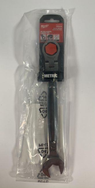 As new Milwaukee 17mm Max Bite Flexible Head Ratcheting Combination Spanner (4932480190).