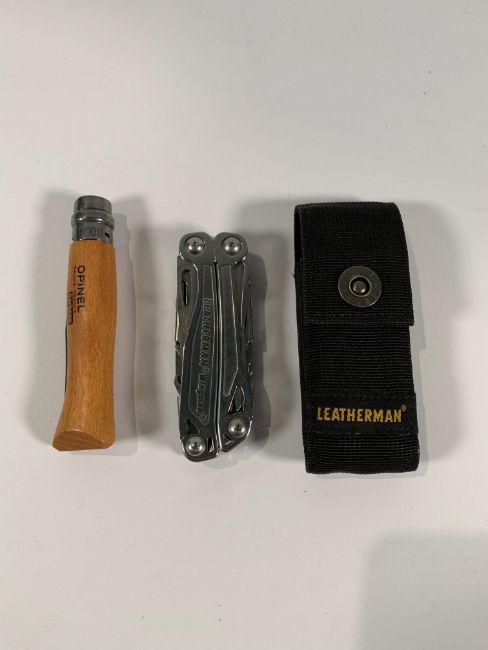 Leatherman Wingman Multi Tool and Opinel Carbone.