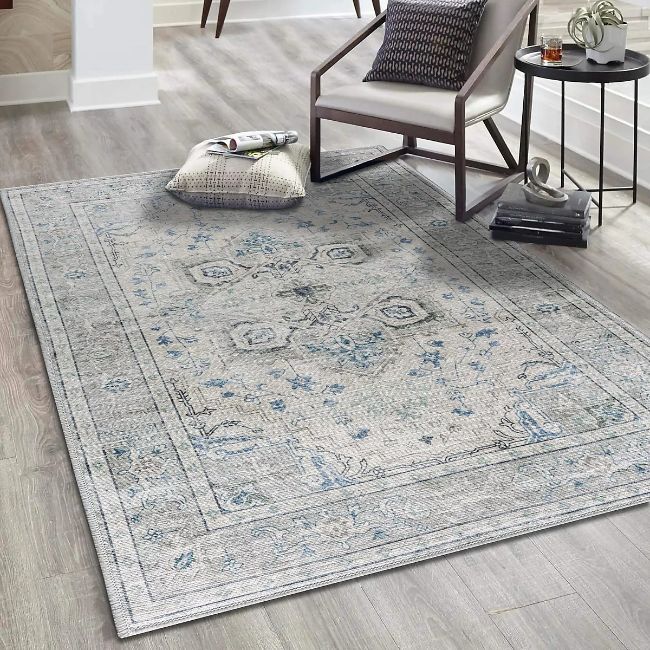 As new Vernal Peoria Machine Washable Rug - Grey, Blue and Cream - 200 x 300cm (stock image).