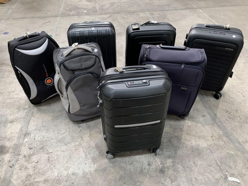 Seven pre-owned Wheeled Suitcases to include Samsonite, Desley and Eddie Bauer.