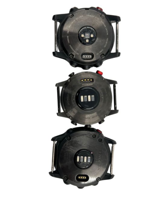 Three pre-owned Garmin Smartwatches (Untested, sold as seen).