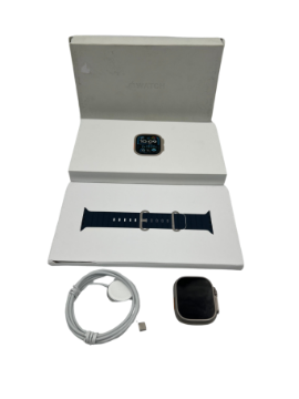 Pre-owned Apple Watch Ultra 2 (GPS + Cellular) 49mm Titanium Case (iCloud locked, sold for parts only) with Blue Ocean Band, charger & original packaging.