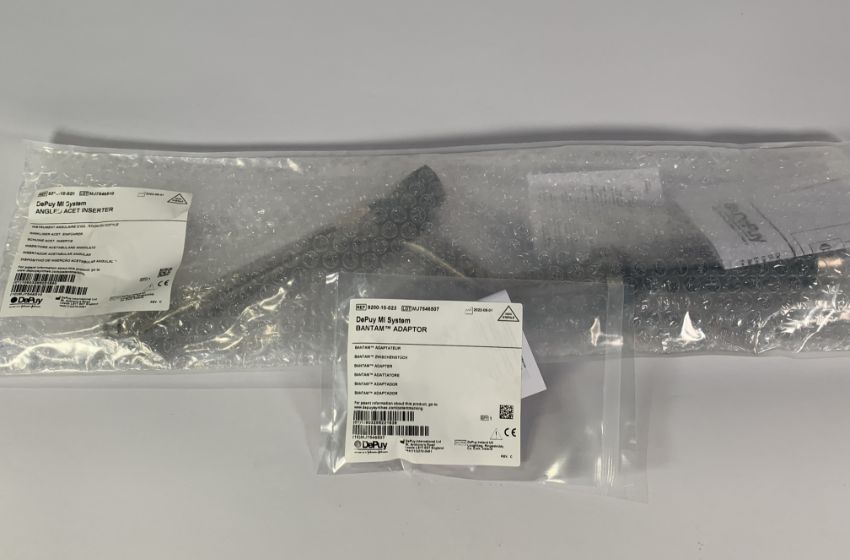 A box of DePuy Synthes products to include 10x Angled Actet Inserter (REF: 9200-10-029), 10x Bantam Adaptor (REF: 920010023). As New.