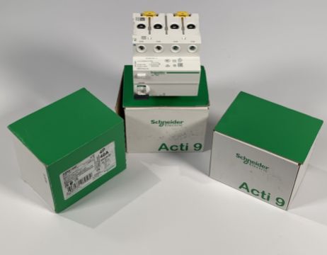 Three as new Schneider Electric Actvi 9 - iID (A9R61440) 4P, 40A 30mA-Si, 400V/415V, Type A-Si, Residual Current Circuit Breakers.
