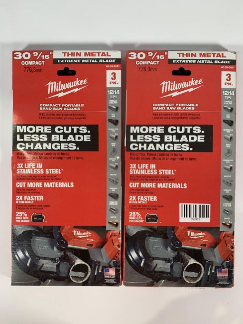Two as new Milwaukee Extreme Metal Blades Packs (48-39-0631) 30-9/16" 12/14 TPI (3 blades per pack).