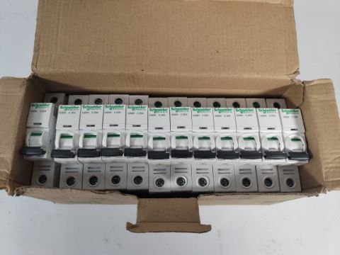 Two boxes of as new Schneider Electric Acti 9 IC60H miniature circuit breakers, 1P 25A C (12 per box, REF: A9F54125).