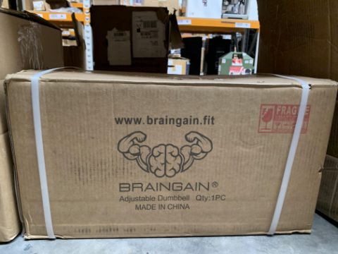 As new Braingain adjustable 32Kg dumbbell for home fitness/gym equipment, 570 x x270 x 300mm, Boxed.