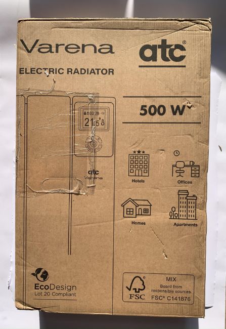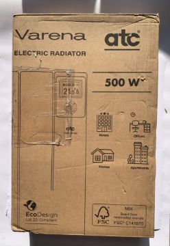 Varena VAR500 Electric Radiator, 500W, IP2X, H 581mm x D 100mm x 335mm, 3 Elements Thermo Fluid, Sealed Box. As New.