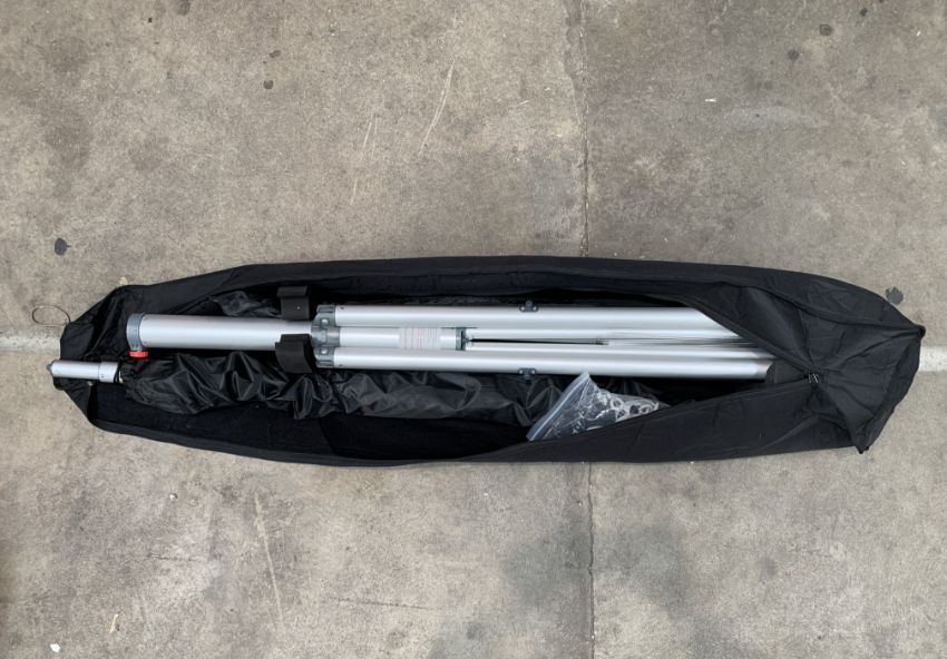 A preowned Expand Flag Stand XL with carry bag. (some damage to bag/ sold as seen)