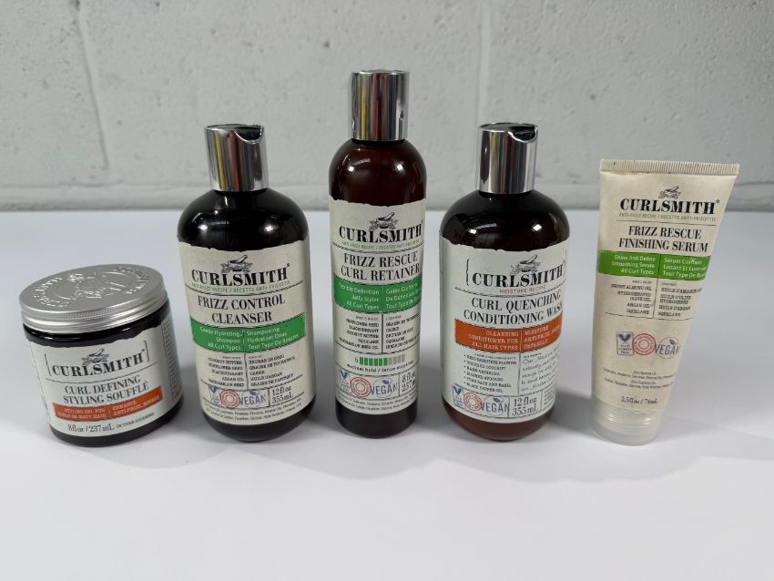 Thirty Five Curlsmith Related Hair Products to include Frizz Control (355ml) Moisture Memory Reactivator (237ml) and Curl Defining Styling Scuffle (237ml) Some Lids Missing/Packaging Labels Worn Slightly.