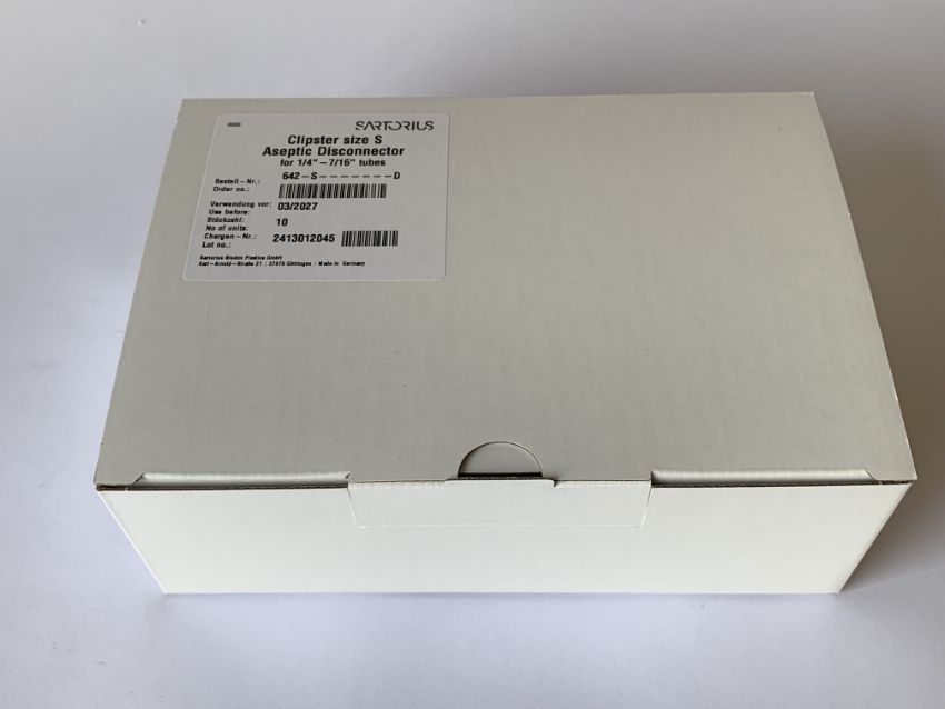 Box of One Hundred Sartorius Aseptic Disconnectors for 1/4"- 7/16" Tubes (REF: 642-S-D) As new