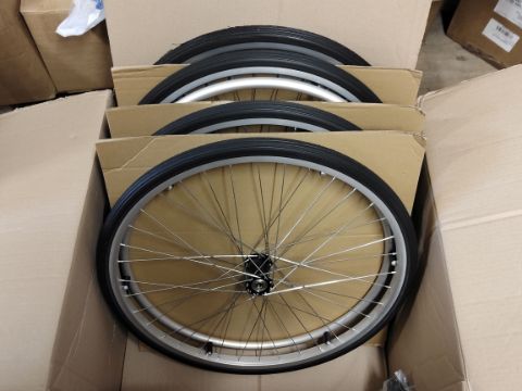Two pairs of as new Wheel Chair Wheels. (BRAND UNKNOWN)