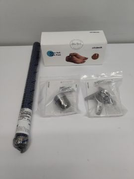 One Ottobock 1WR95 aqua foot (REF: 1WR95=L24-0-P/4), 1x Ottobock angled tube adapter (REF: 2WR95=1), 1x Ottobock tube clamp adapter (REF: 4WR95=3) and 1x Lamination anchor (REF: 4WR95=1).