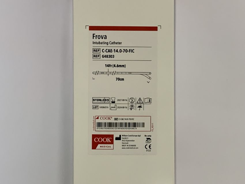 A box of ten as new Cook Medical Frova Intubating Catheters (REF: G48303) 14fr (4.6mm) 70cm (EXP: 2027/08/16).