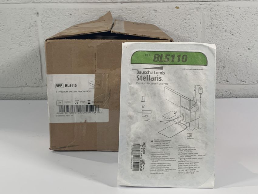 A box of six as new Bausch & Lomb Stellaris Premium Vacuum Phacoemulsification Packs (REF: BL5110, EXP: 2025-07-08).