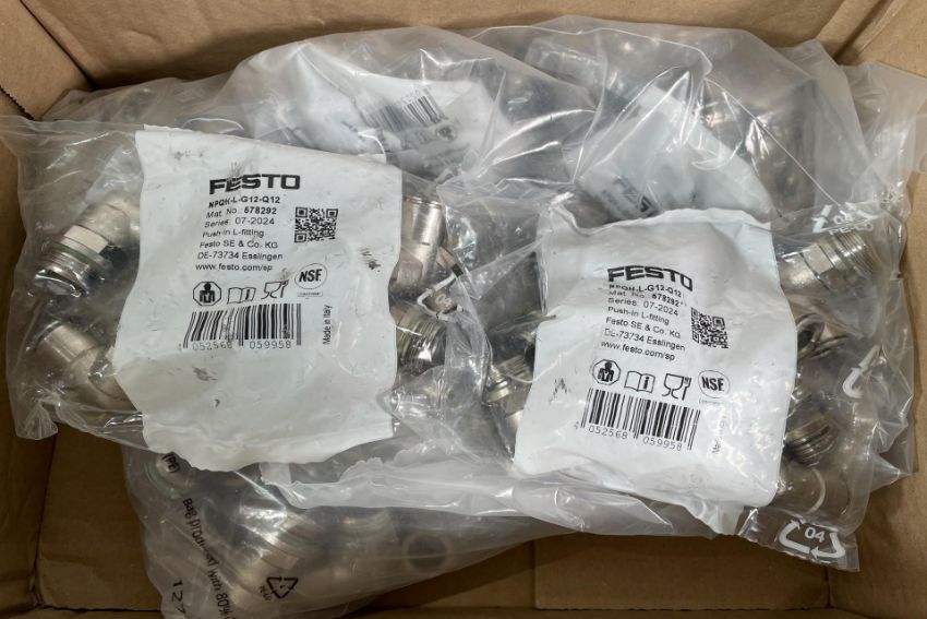 One hundred as new Festo NPQH-L-G12-Q12 pneumatic plug-in fittings.