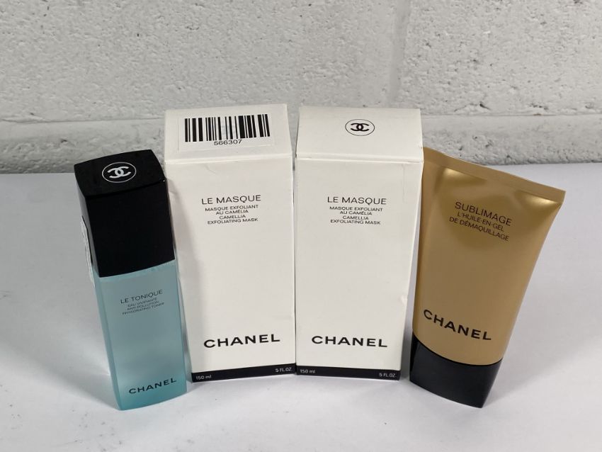 Four Chanel beauty products to include 2 le masque exfoliating masks 150ml, sublimage 150ml and le tonic invigoration toner 160ml.