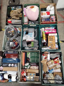Ten crates of assorted as new items to include toys, homewares, cosmetics and related.