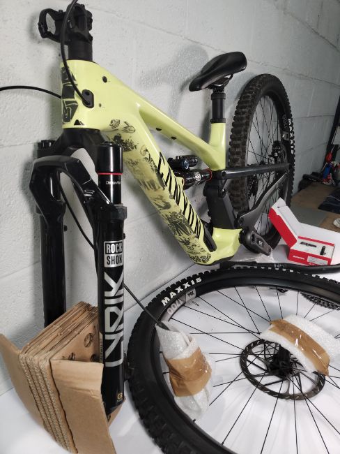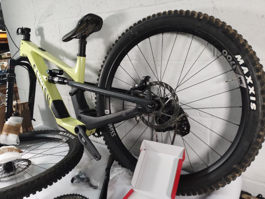 A pre-owned Canyon Spectral CF 9 trail bike (frame XS) - neon (sold as seen).