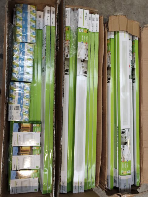 Approximately sixty assorted Spectrum LED lights to include Viga Oprawa 32W, Noctis Lux 2 30W and GU10 6W lamps.