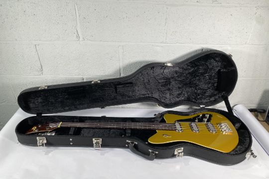 As new Duesenberg Triton Goldtop bass with hard case.