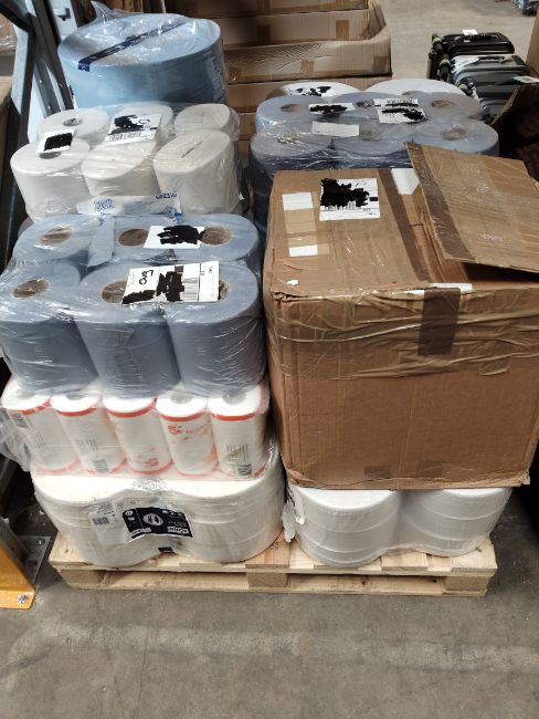Assorted blue roll, toilet roll and related.