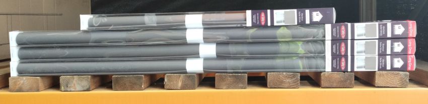 Four as new Furnished branded blackout roller blinds, grey, 3 x 110cm (max drop 210cm) and 1 x 65cm. (Max drop 165cm)