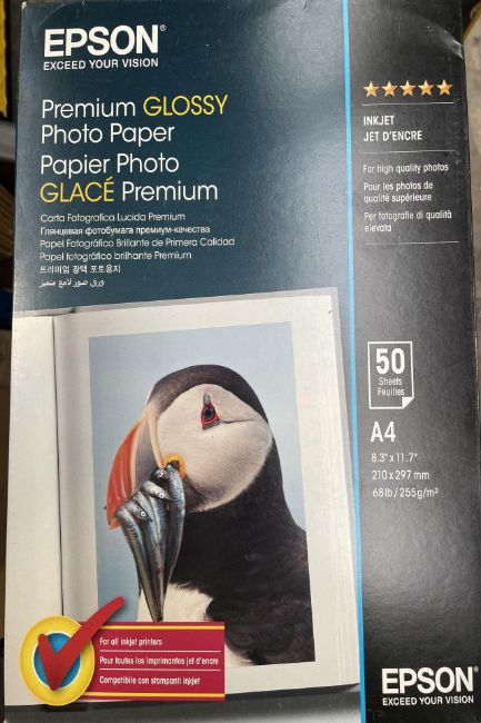 Eleven packs of 50 sheets Epson C13S041624 premium glossy photo paper - A4.