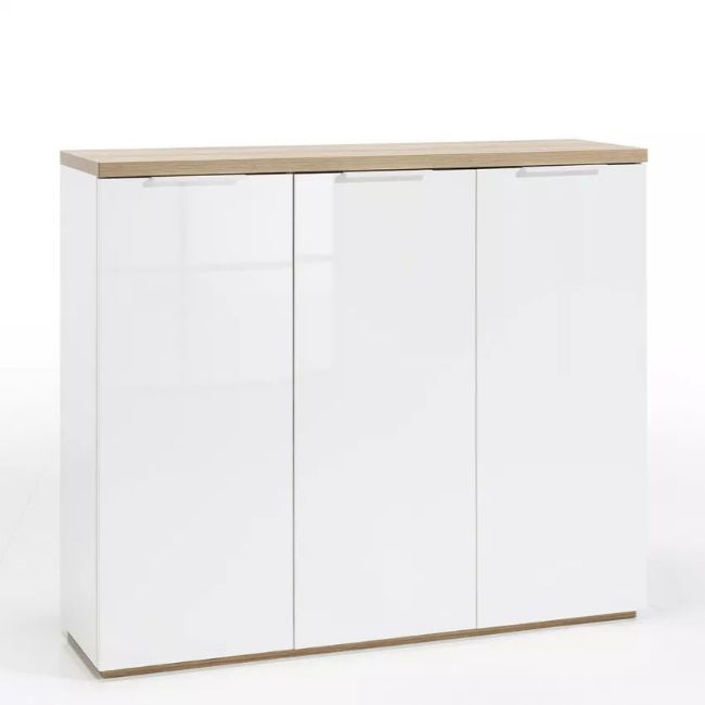 Composad Multipurpose Shoe Cabinet 3 Doors Glossy White (BS3490K64904)- 30 Shoes (stock image).