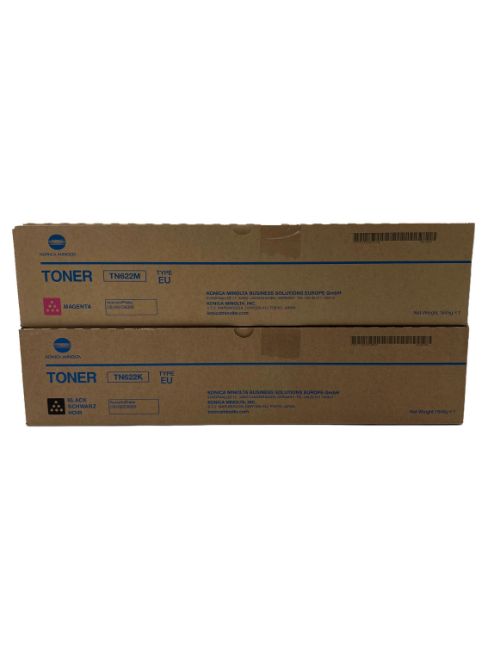 Six as new Konica Minolta TN-622 Toner Cartridges: 3 x Black A5E7151 & 3 x Magenta A5E7351.