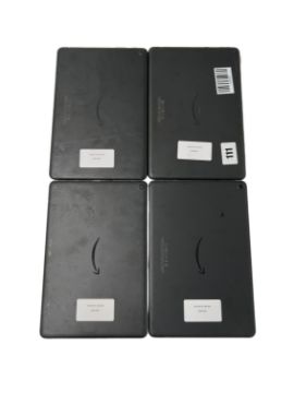 Three pre-owned Amazon Fire HD 10 Tablets.
