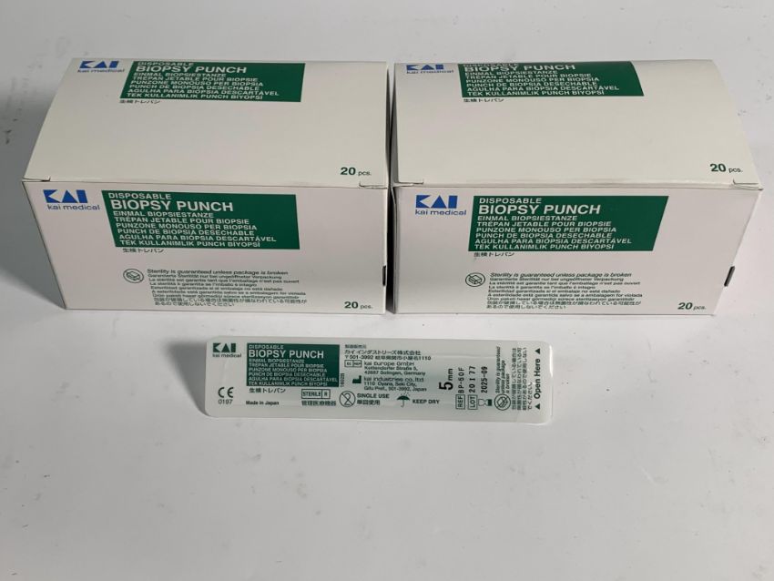 Fifty as new boxes of Kai Medical Disposable Biopsy Punch, 5.0mm (20pcs per box, REF: BP-50F) (EXP: 2025-09).