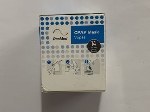Sixteen boxes of as new Resmed CPAP Mask Wipes (REF: 61919, 14 sachets per box)