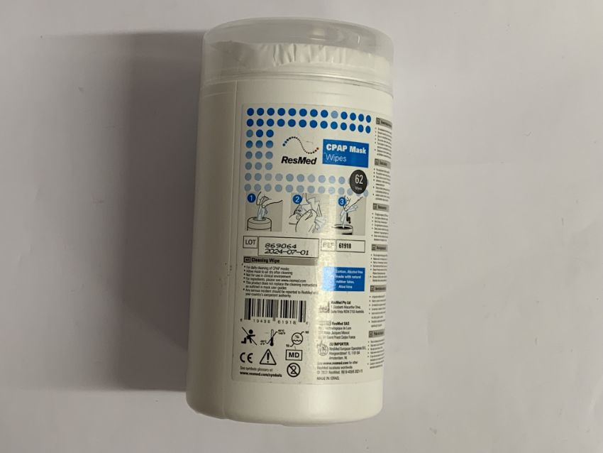 Sixteen tubs of as new Resmed CPAP Mask Wipes (REF: 61918, 62 wipes per tub)