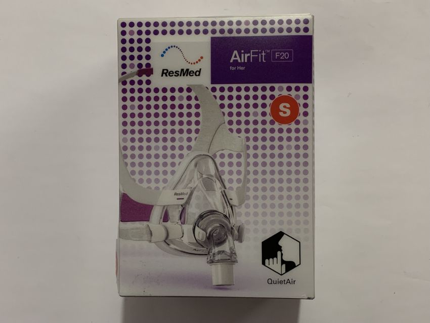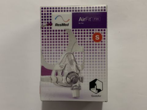 An as new Resmed Airfit F20 full face mask for her, size small (REF: 64008).