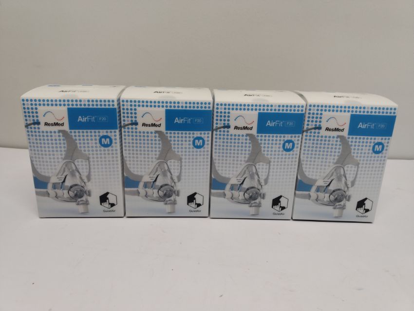 Four as new ResMed AirFit F20 full face mask for sleep apnoea, Large (REF: 64007, EAN: 619498640072).