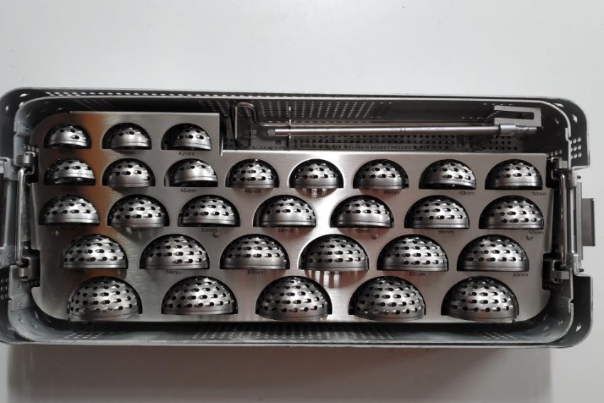 Pre-owned MicroPort Orthopaedics Acetabular Reamer tray with instruments.