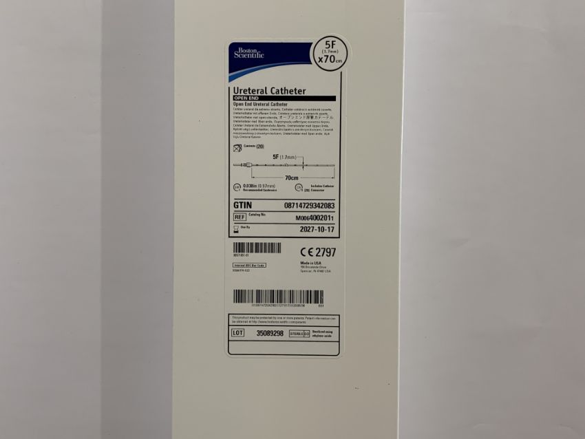 An as new Boston Scientific Open End Ureteral Catheter 5F (1.7mm) x 70cm (REF: M400201, EXP: 2027/10/17).