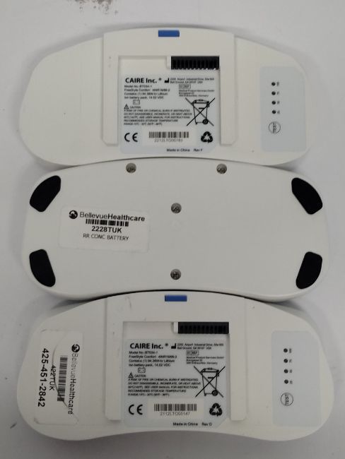 Three pre-owned Caire Inc. FreeStyle Comfort lithium ion battery packs (REF: BT034-1).