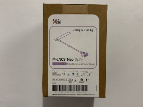 An as new Masimo M-LNCS Neo Sp02 Neonatal/Adult Pulse Oximeter Adhesive Sensor, 3kg - 40kg (REF: 2514, EXP: 2027/11/01, 20pcs).