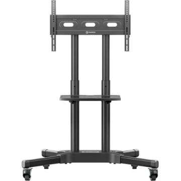 An as new Onkron mobile TV stand, screen size 35"- 60", load capacity 50KG/110LBS, TS1351, black (stock image).