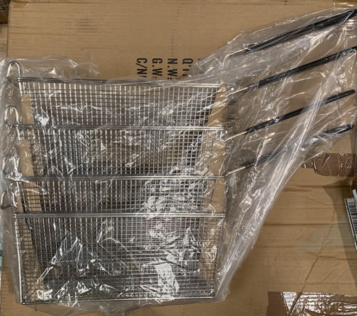 As new four metal food fryer baskets - size L:33 x W:14 x D:14cm.