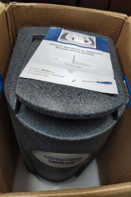 A Complete Leisure swimsuit dryer water extractor unit, box open.