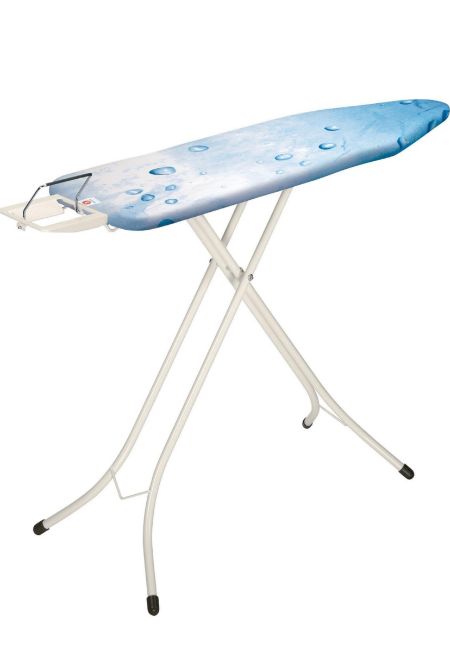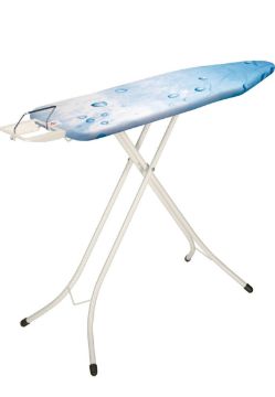 An as new Brabantia ironing board with steam iron rest and adjustable height, non slip rubber feet, cotton cover with foam layer, foldable, ice water design, size: 124 x 38cm (stock image).