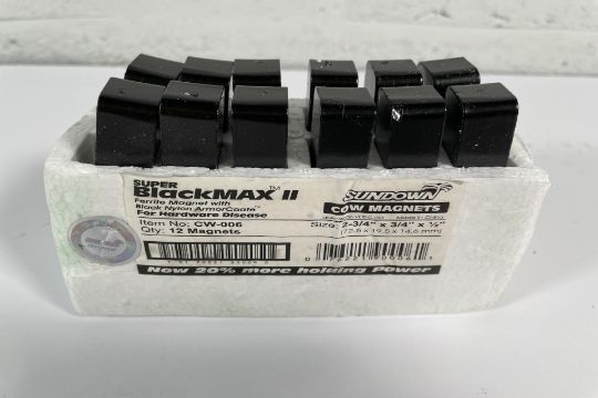 One hundred and twenty as new 12 Livestock Cow Magnet BlackMAX 2 Sundown Control Hardware Disease Bovine CW006.