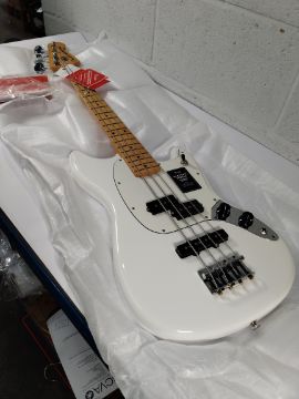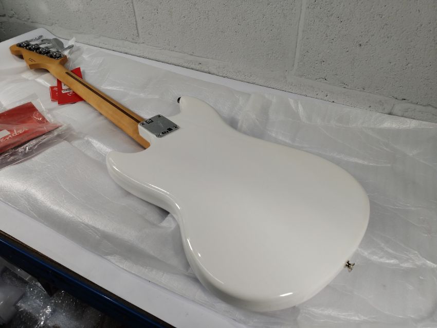 An as new Fender Player II Mustang Bass PJ maple fingerboard polar white.