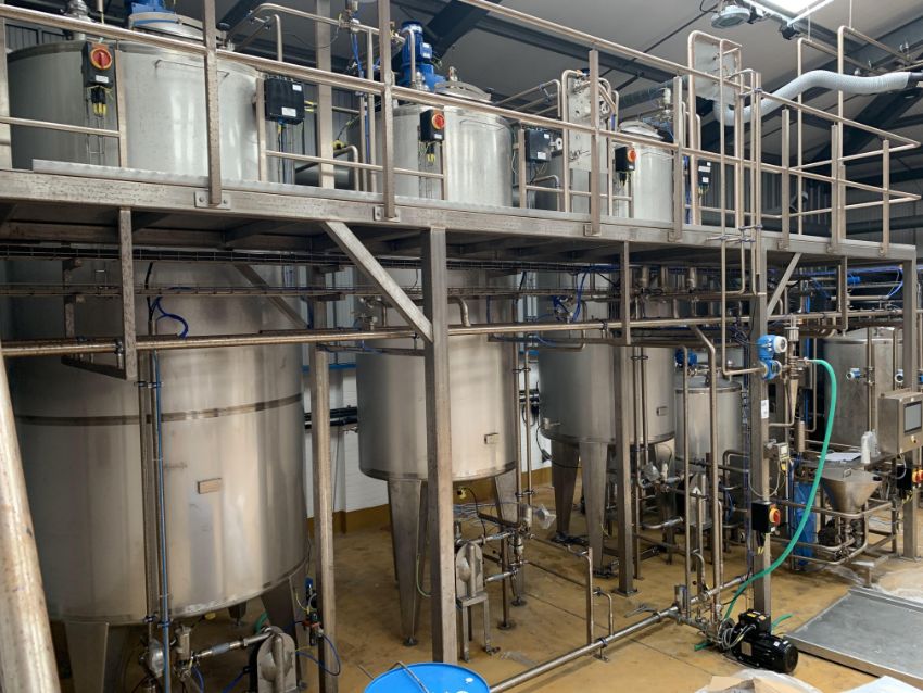 A 5,000L and a 1,000L stainless steel (316L grade) mixing tanks with top mixers and online homogenisers.