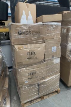 A pallet of miscellaneous to include production line bottles, bottle lids and other.