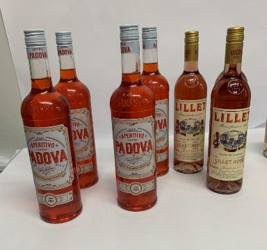 Three Lillet Rose French Aperitif 3 x 750ml and four Padova Aperitivo 4 x 1ltr.
